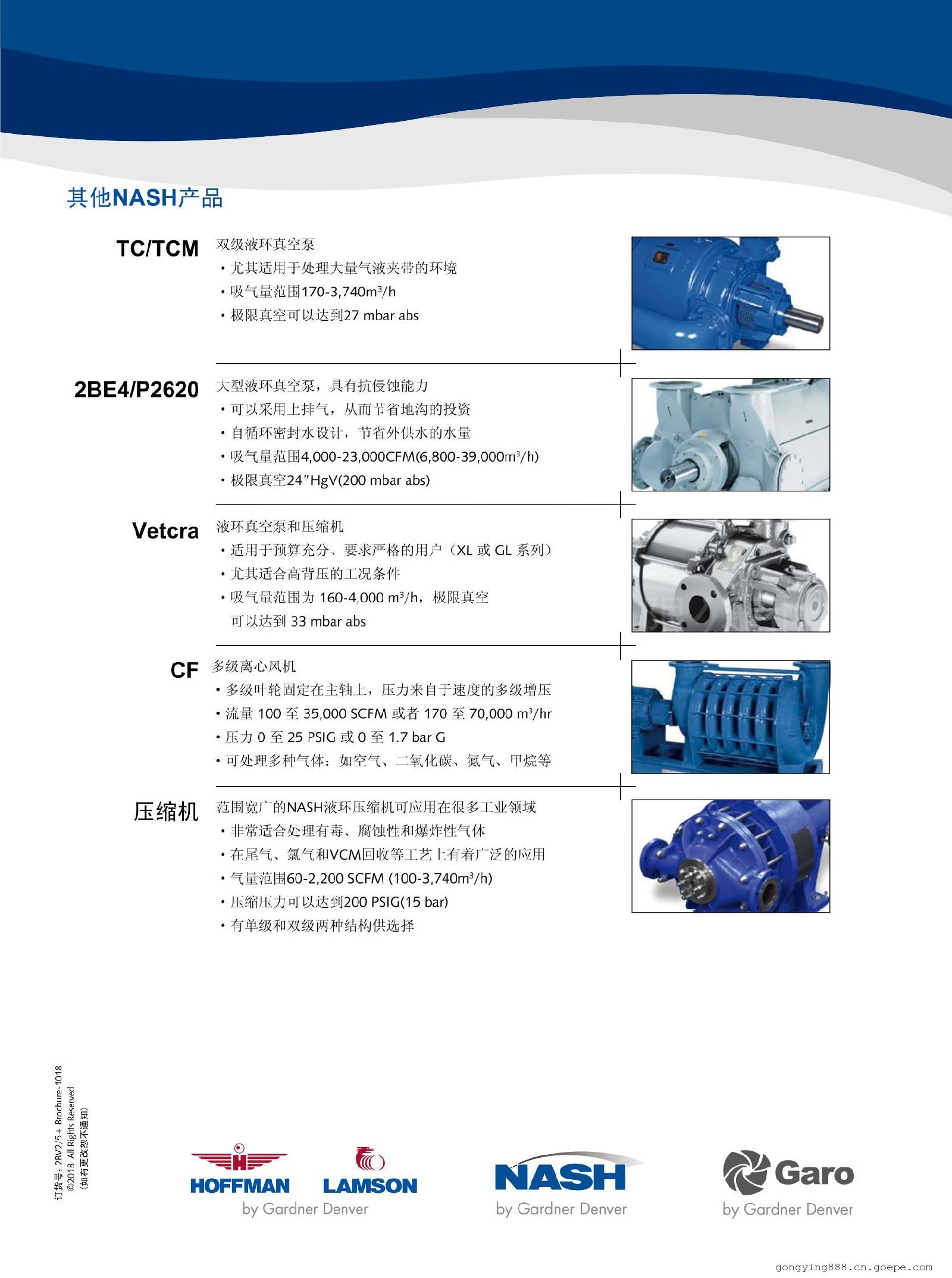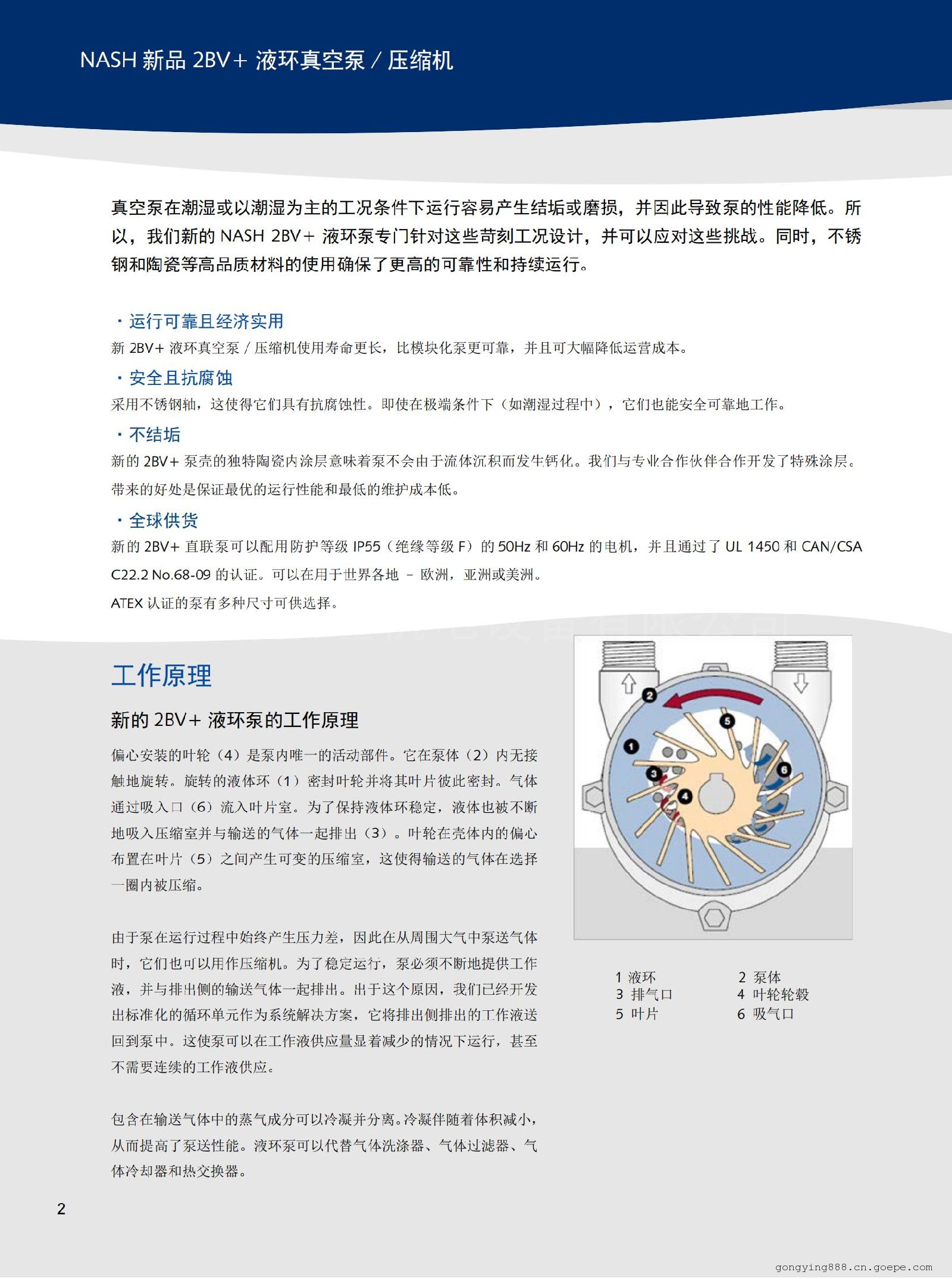 NASH佶締納士小型SX真空泵,更高標準的液環真空泵NASH液環真空泵出色的性能和可靠性已經經過了一百多年的驗證,新的NASH小型Vectra SX真空泵也繼承了這種高標準。Vectra SX系列產品具備品質高和尺寸小的特點。NASH設計研發工程師采用模擬建模、有限元分析和計算機流體動力學模擬等現代化技術手段,結合自己數十年的開發經驗,應用于這款產品的設計和生產中,從而向客戶交付了更高的價值產品。結果證明Vectra SX具有較佳的性能、更低廉的運行成本,其特殊的結構設計完全滿足了工業領域客戶的苛刻要求。應用于苛刻工況的可靠技術Vectra SX 液環真空泵/壓縮機可以為我們的客戶提供低的運行成本和更出眾的整體價值。精心選擇的運行轉速,確保了SX液環真空泵運行過程中的磨損較小、效率較高和壽命較長。由于設計采用低水流量要求和低功率消耗量,從而使運行成本大大降低。Vectra SX 的設計避開電機額定工況點,所以大大延長了泵的使用壽命。的設計還包括一些高品質的部件,如精密鑄造的不銹鋼轉子是泵的標準配置。鑄鐵泵包含一個的不銹鋼內襯,以減少內部侵蝕和保持較高的運行效率。獲得的GSV設計也是我們的一個優勢,在高真空條件下不僅提高了泵的吸氣性能而且還延長了使用壽命。